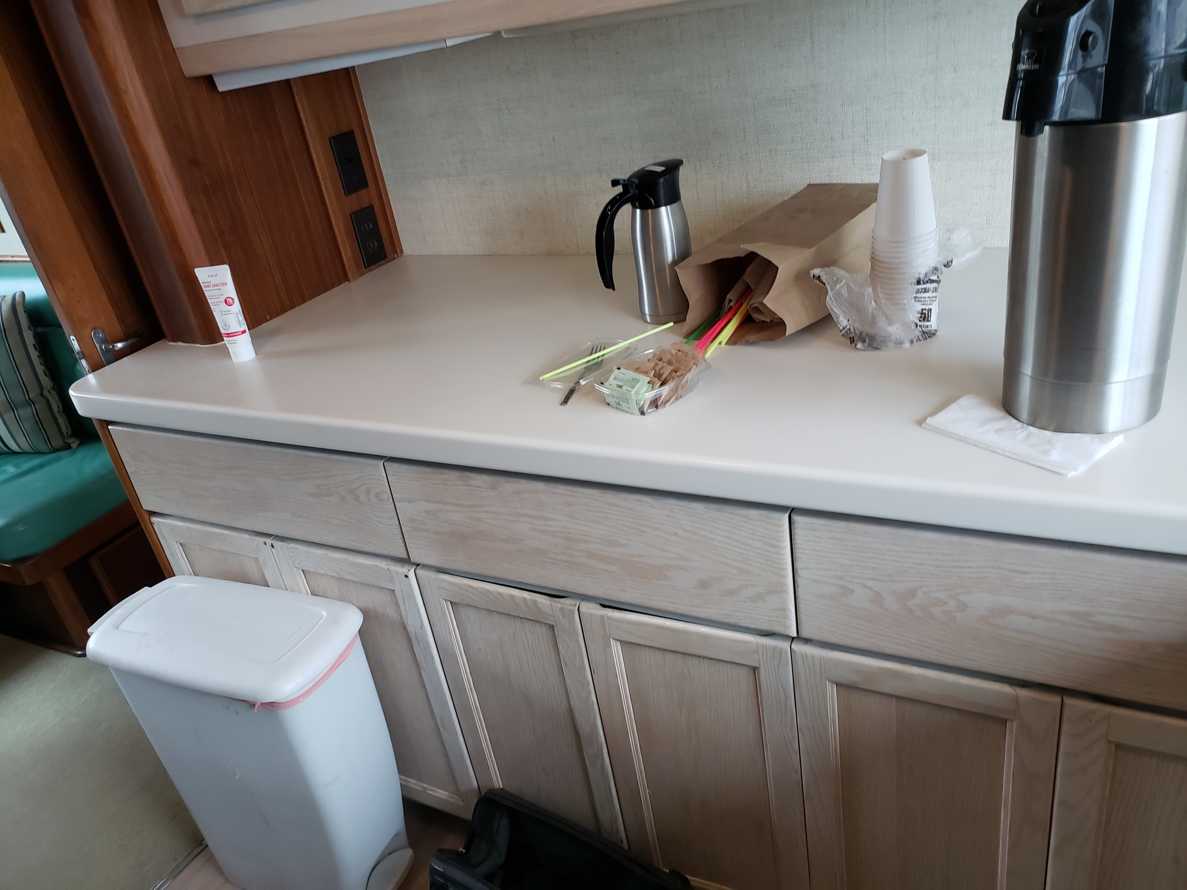 We loved the boat but bought it knowing full well it needed a full kitchen remodel and three of the four baths updated. The kitchen was straight from 1981 stock- minus the lovely whitewashed pink cabinets someone put in and the turquoise dinette and accent upgrade. Galley style set up kept it closed off and…