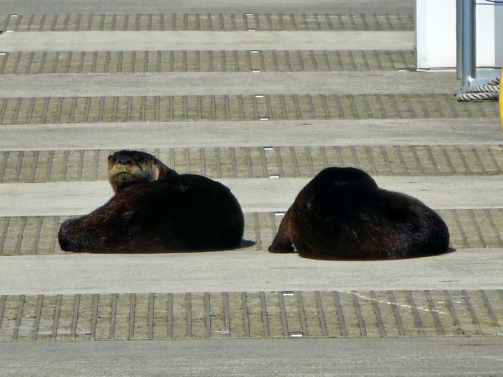 The summer brings lots of mommas and babies to the marina. Pairs of mother and baby seals circle and sunbath around the boat making summers some of the most fun months of boat life. Otter packs join in roaming the docks causing mischief on the regular.